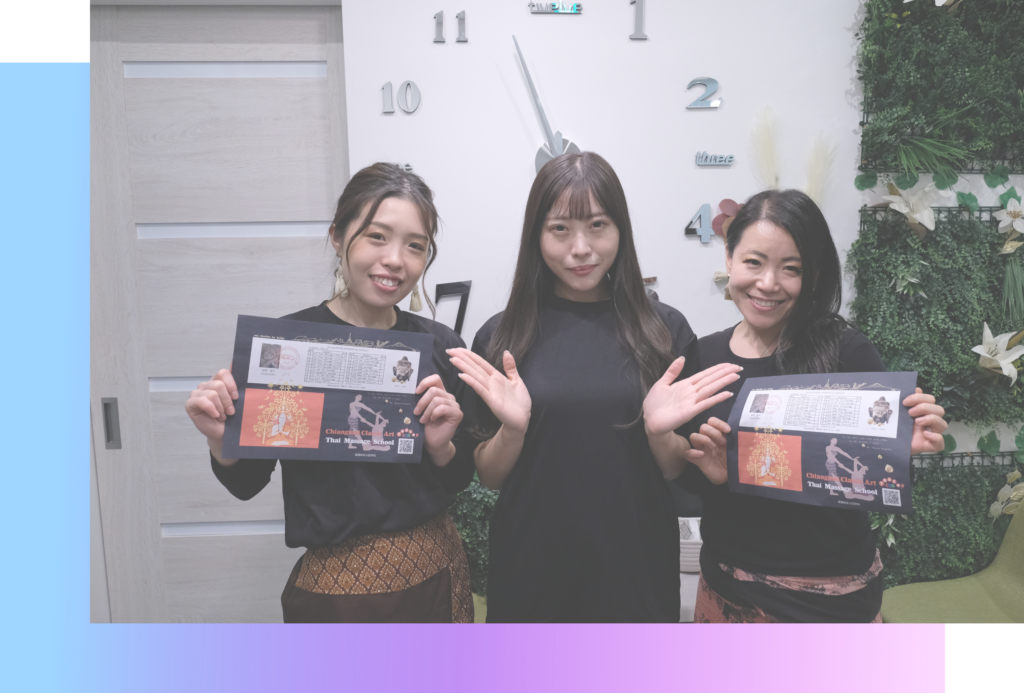 店舗で働いているスタッフも8割~9割ほどの方が未経験からのスタートです! タイ政府が認定しているスクール講習で基礎からしっかりとした技術を身に付けられる研修制度をご用意していますのでご安心ください。